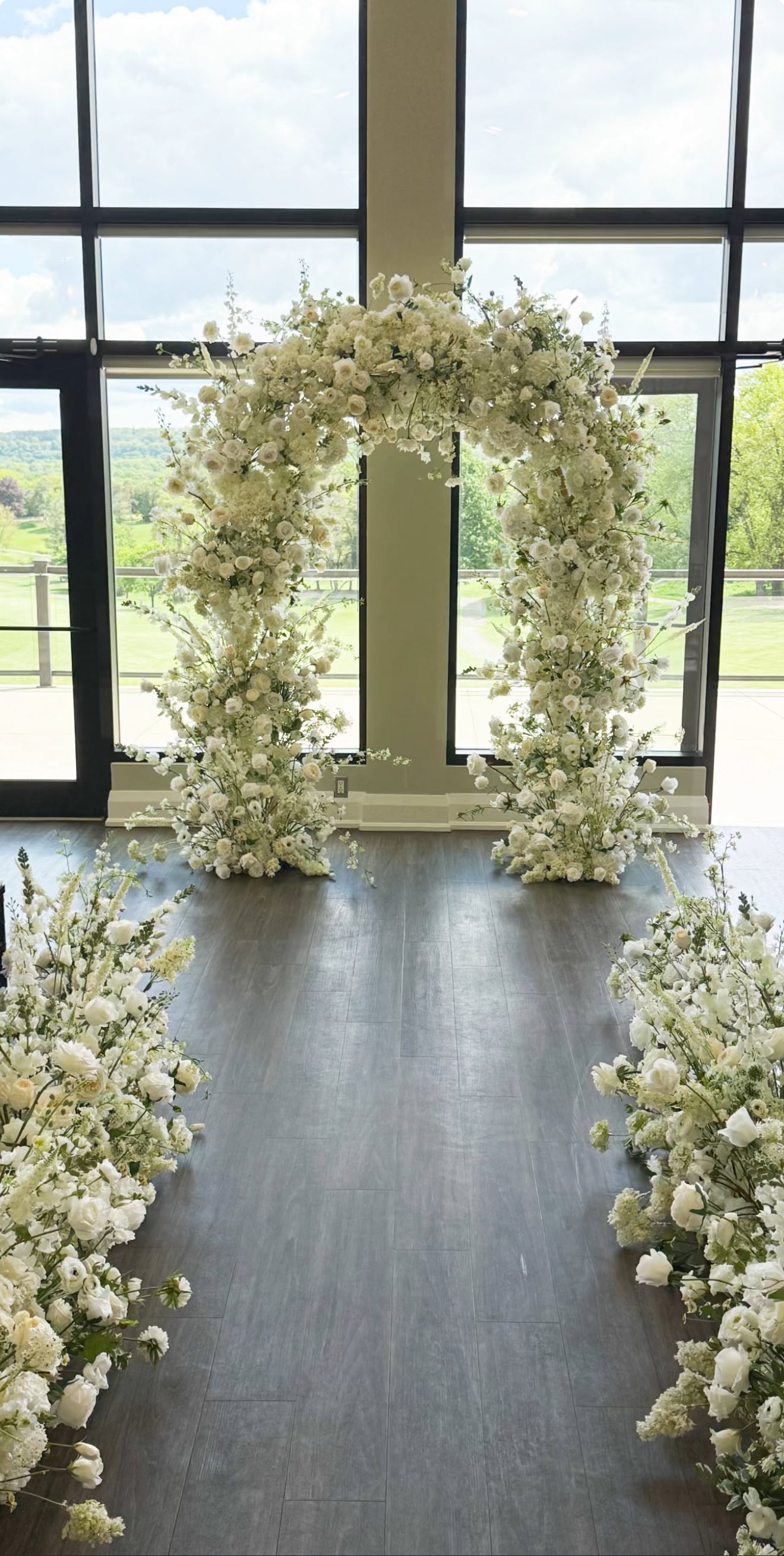 The arch in the photo, has hydrangeas added in (through editing), as I will be adding more hydrangeas/larger off-white flowers, to create a fluffier and larger.