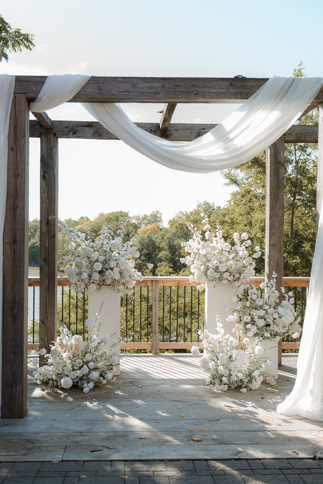 Extra arrangements in photos are not included in this rental price. 2nd photo has 2 Delphinium Aisle Markers in the back (on the ground), which are NOT included in this Mabel Backdrop rental.